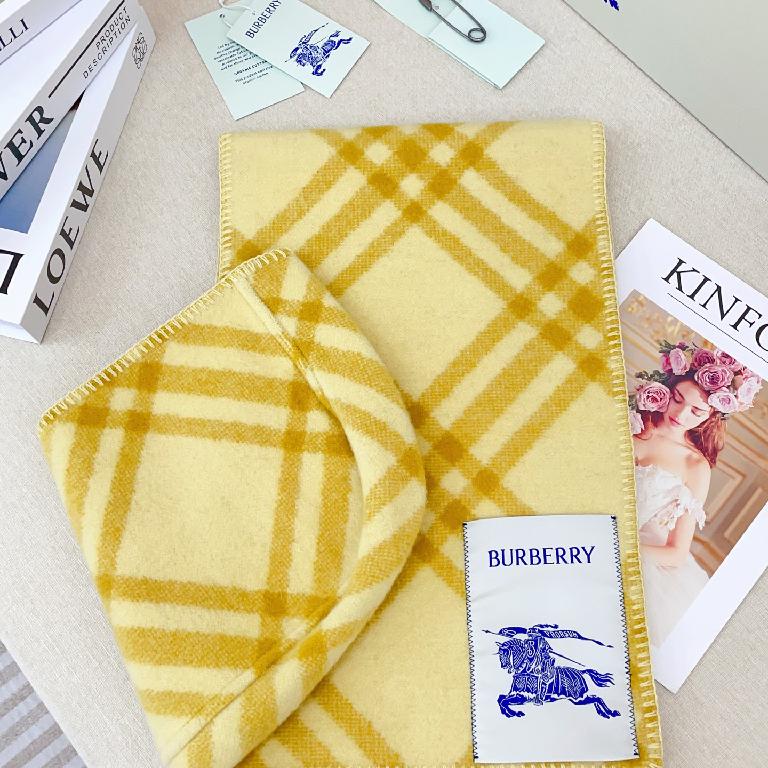 巴宝莉(Burberry)带帽款羊绒羊毛混纺围巾送专柜新款别针 浅黄