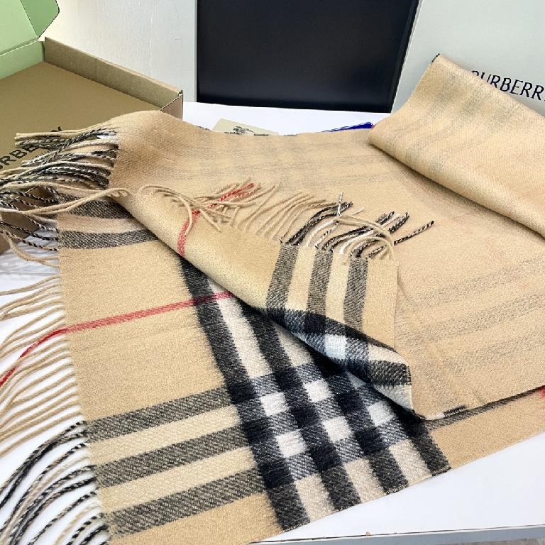 巴宝莉(Burberry)经典格子搭配时尚拼色披肩 杏色