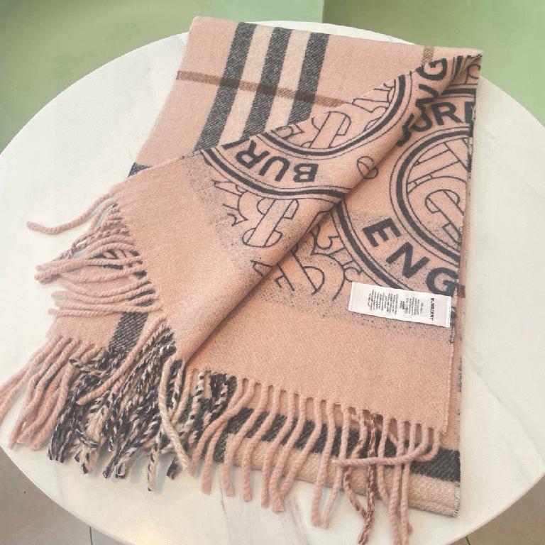 巴宝莉(Burberry) 双面徽章格子羊绒围巾 浅粉黑拼色
