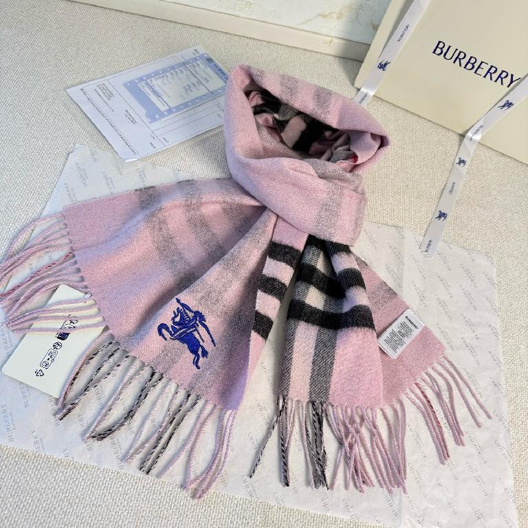 巴宝莉(Burberry) 双面格纹金属线羊绒围巾 粉色