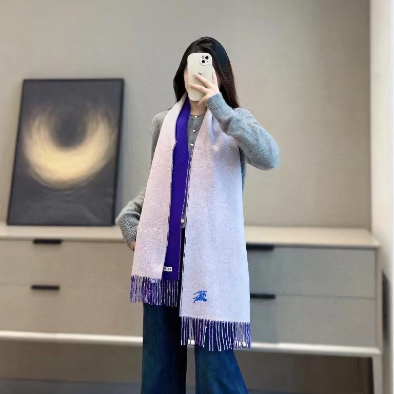 巴宝莉(Burberry) 双面素色马术骑士徽标刺绣长巾 紫色