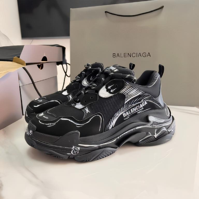 巴黎世家 Balenciaga Triple S 系列老爹鞋(黑银配色款)