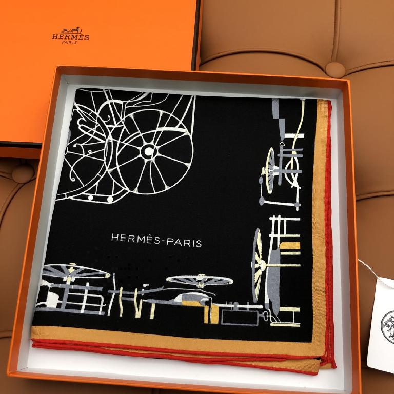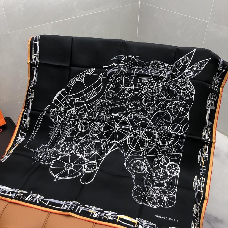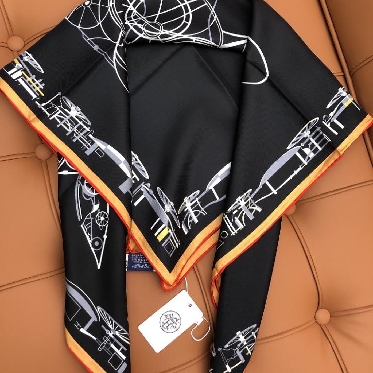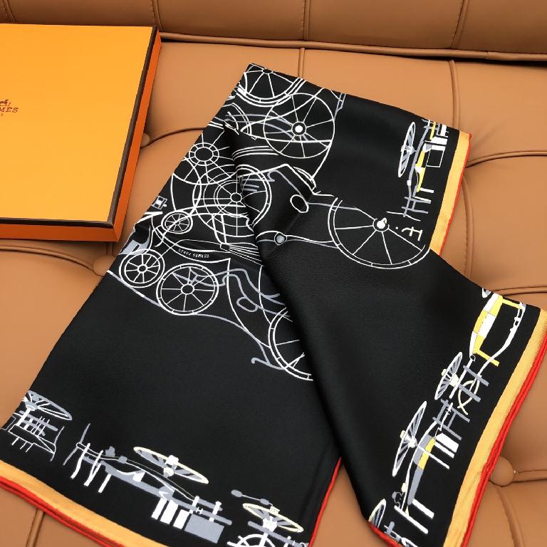 新款双面丝印 姆米斜纹真丝方巾 黑色款