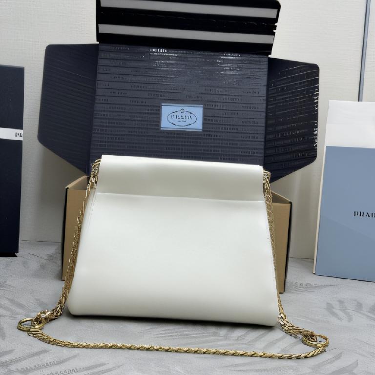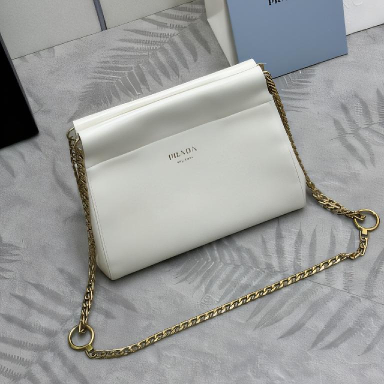 普拉达 (Prada) 白色小牛皮翻盖链条Enchaîné手袋