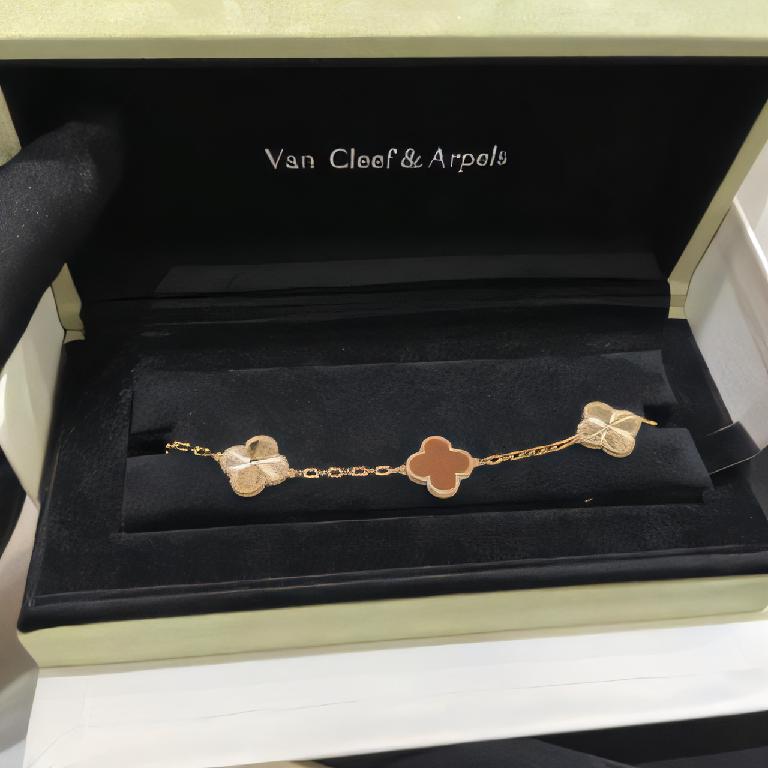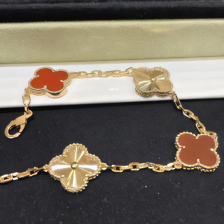 梵克雅宝(Van Cleef & Arpels)Alhambra 系列 18K 金红玛瑙四叶草混合工艺手链