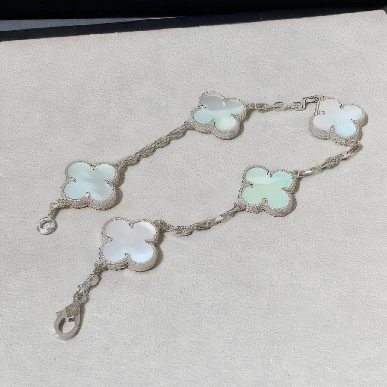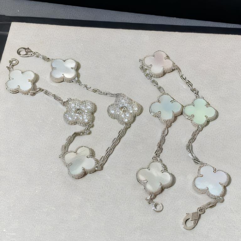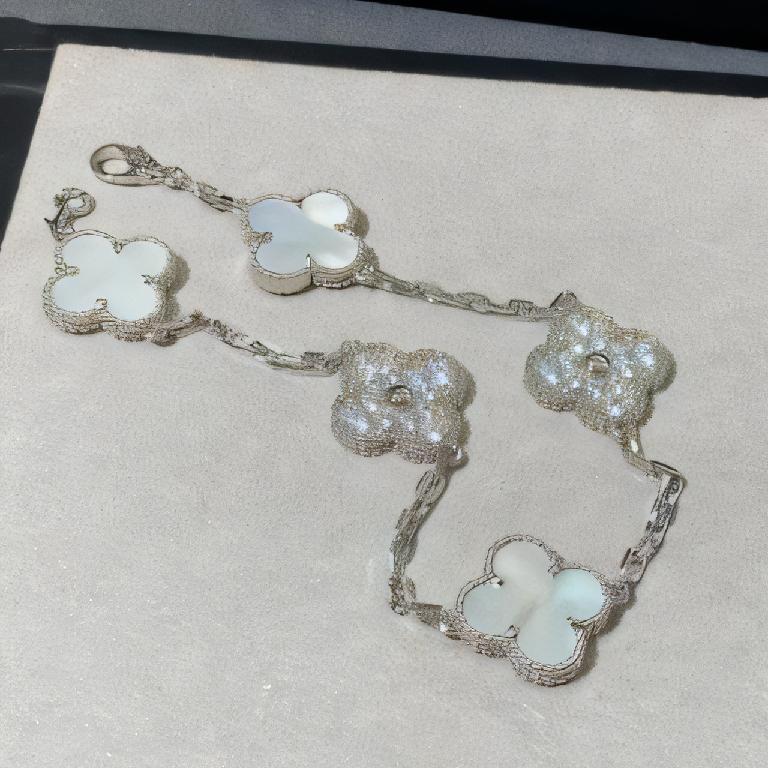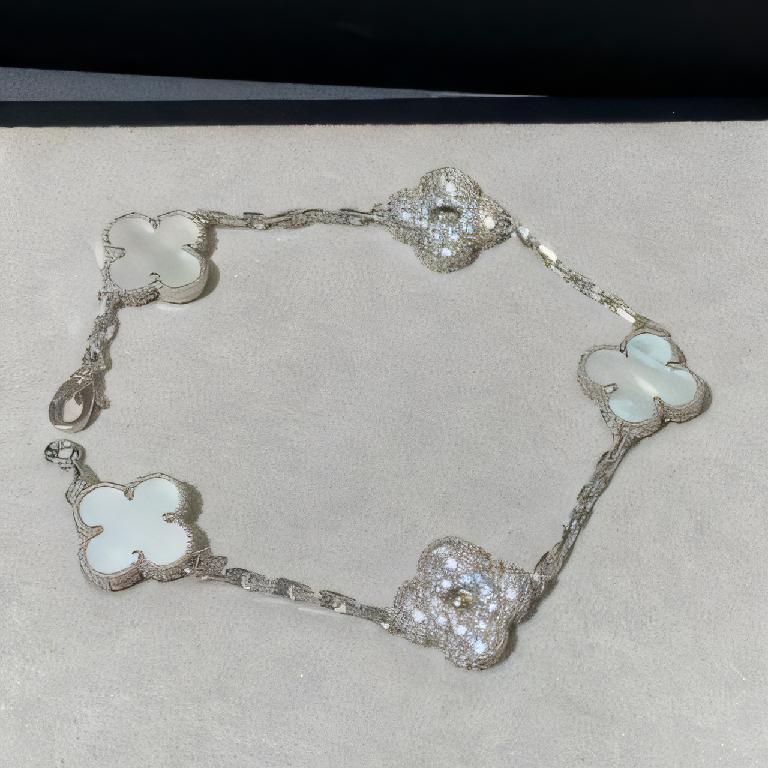 梵克雅宝(Van Cleef & Arpels)Vintage Alhambra 系列 18K 白金白贝母钻石五花手链