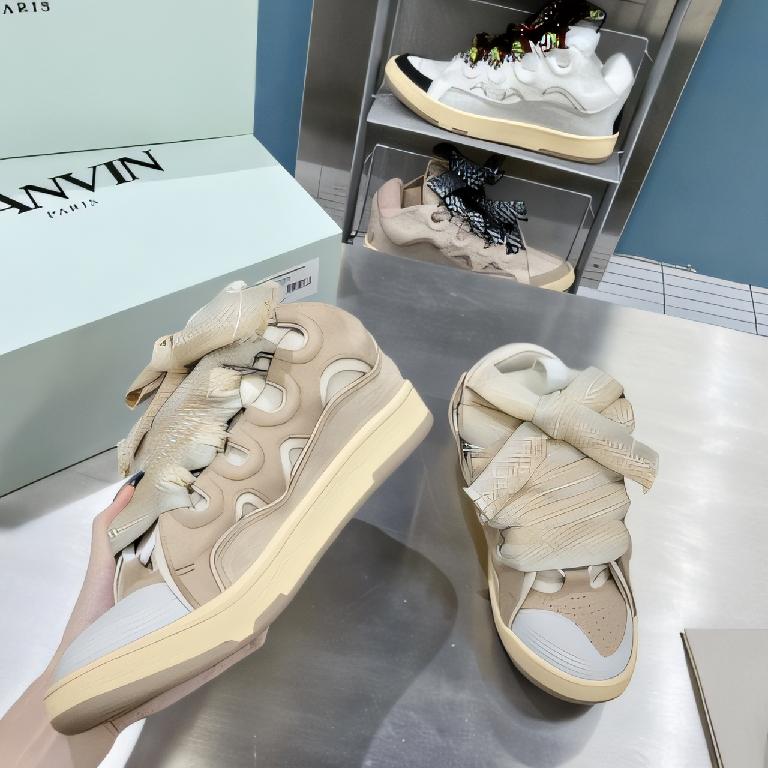 浪凡(LANVIN)Curb 系列蝴蝶结装饰格纹厚底休闲鞋 奶茶杏(格纹拼接配色款)