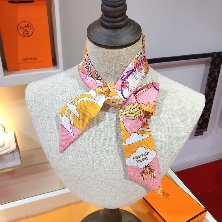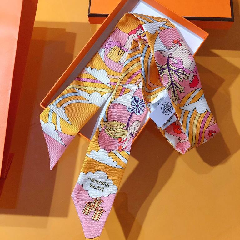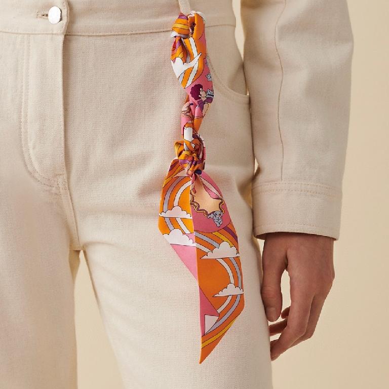 爱马仕【云端女孩】Twilly小丝巾 粉黄撞色