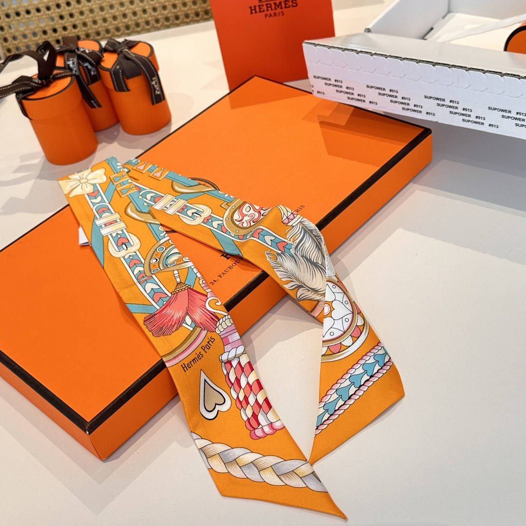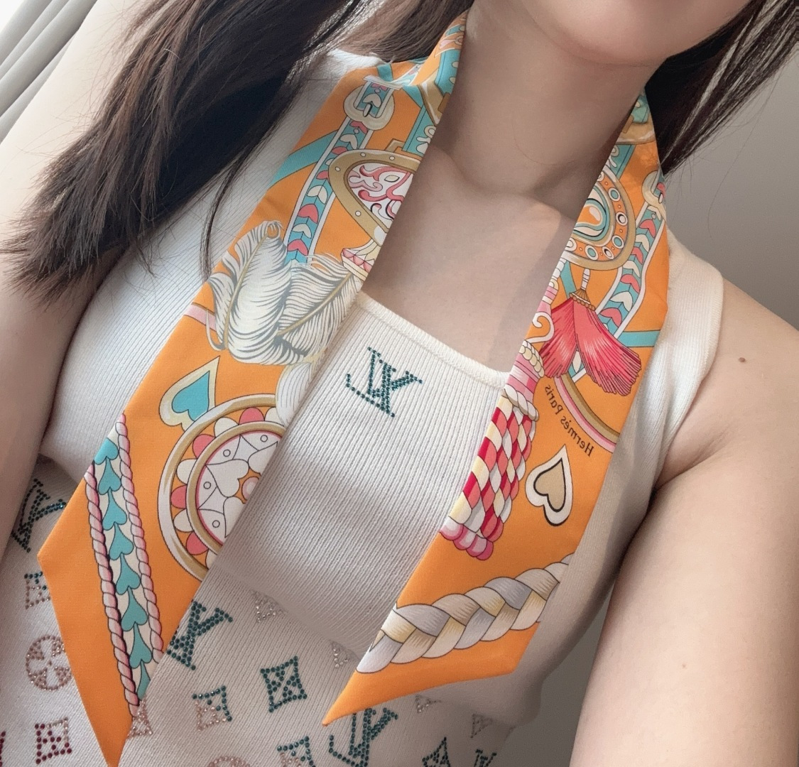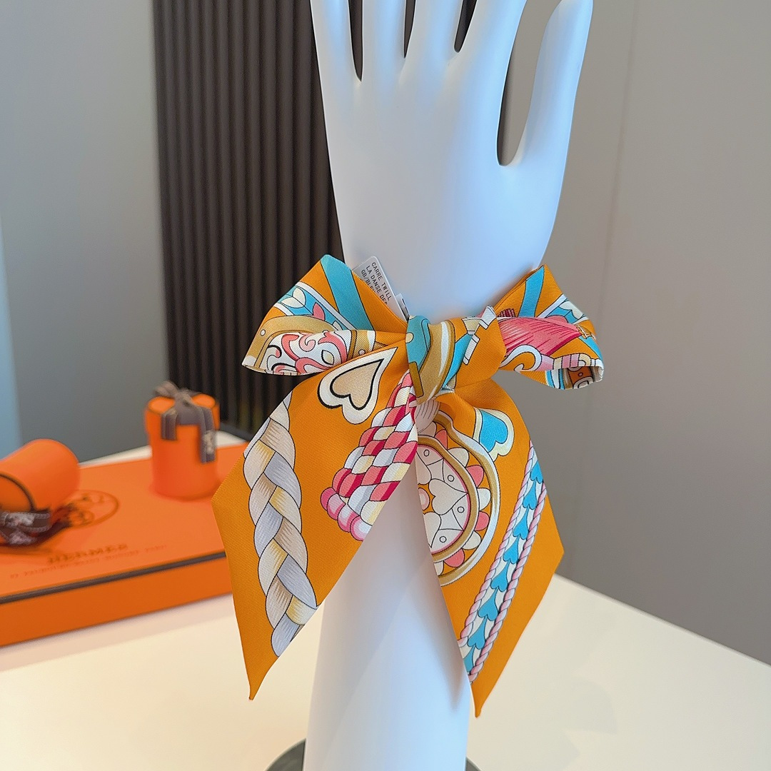 爱马仕“心形鞍具”双层双面束发带 橙色