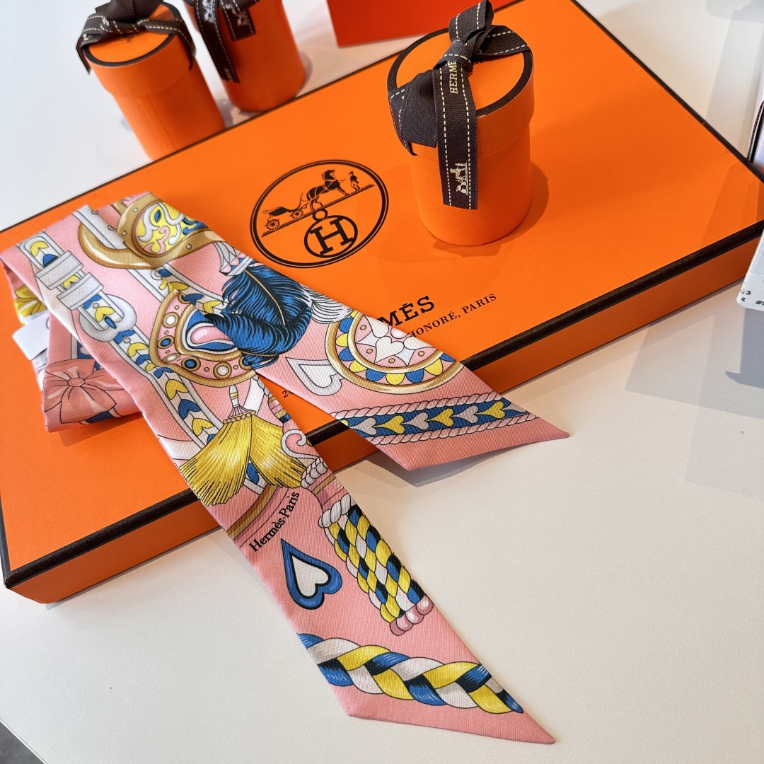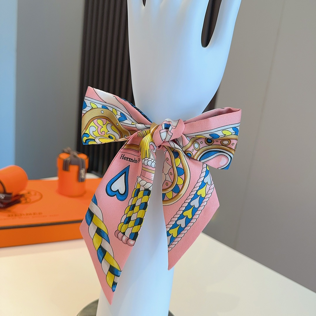 爱马仕“心形鞍具”双层双面束发带 粉色