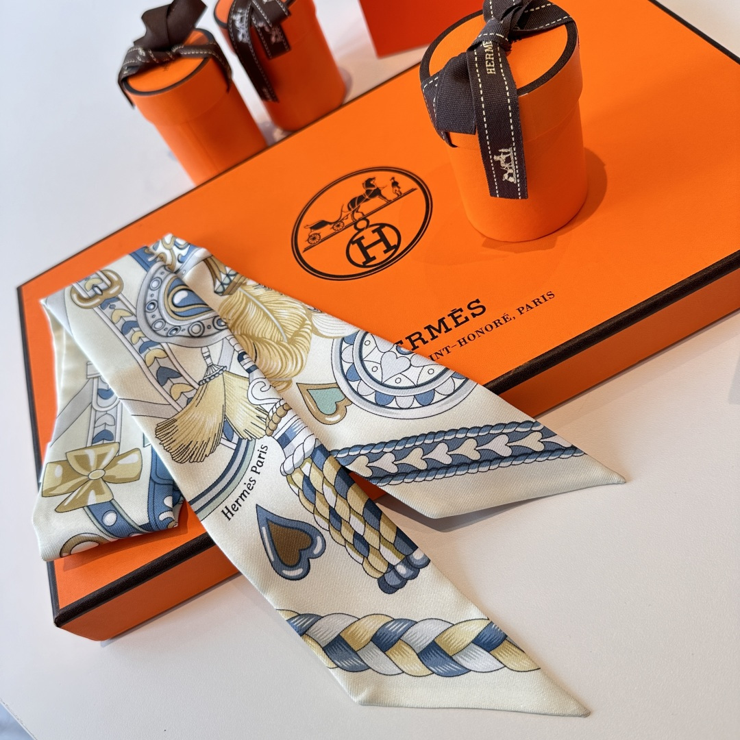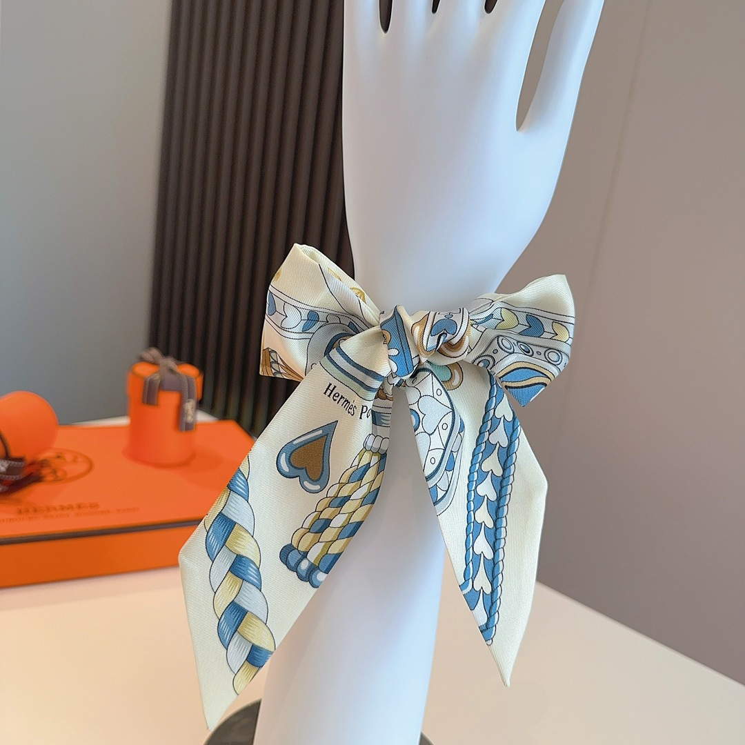 爱马仕“心形鞍具”双层双面束发带 蓝色