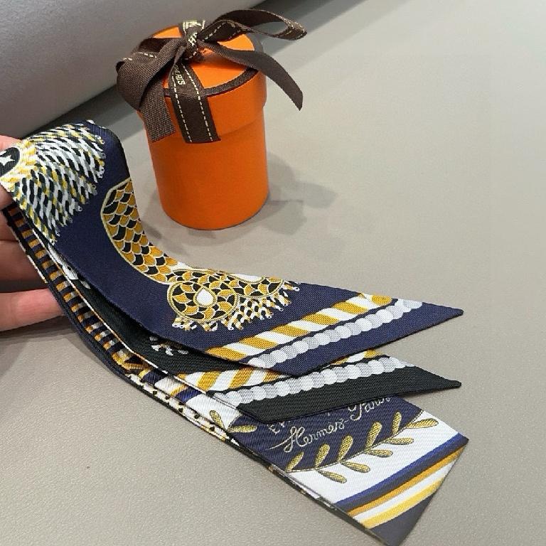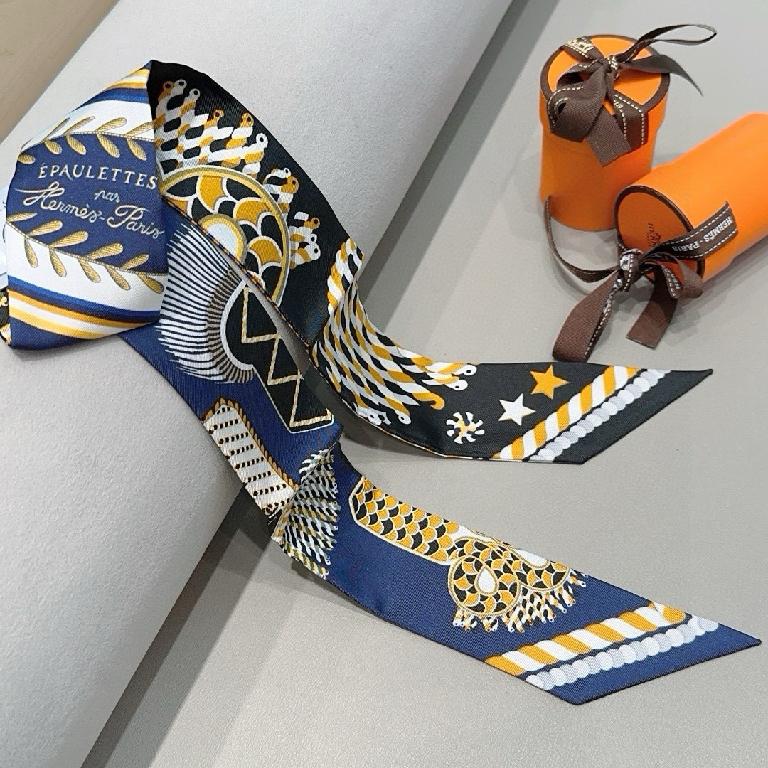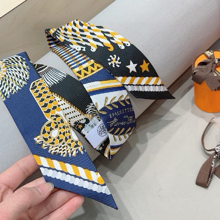 爱马仕斜纹真丝束发带 棕蓝撞色