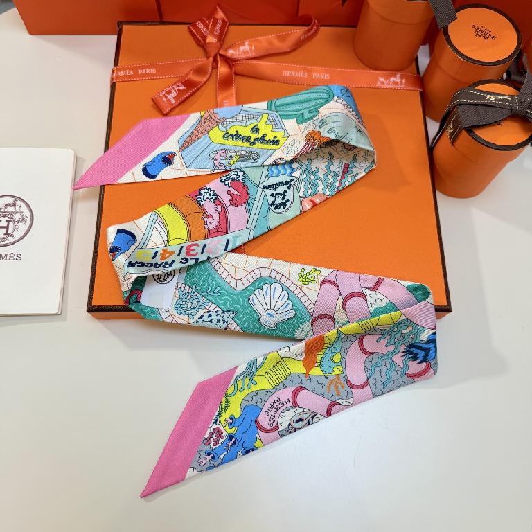 爱马仕水上游乐园Twilly小丝巾 束发带 绿粉撞色