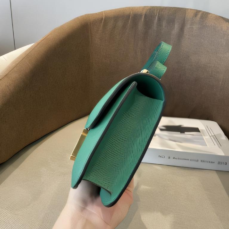 爱马仕(Hermès)Constance Elan 绿色 Epsom 牛皮金属扣单肩包