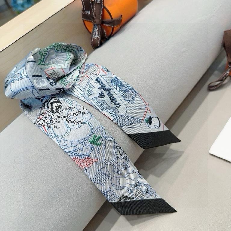 爱马仕 水上游乐园 Twilly小丝巾 灰绿撞色