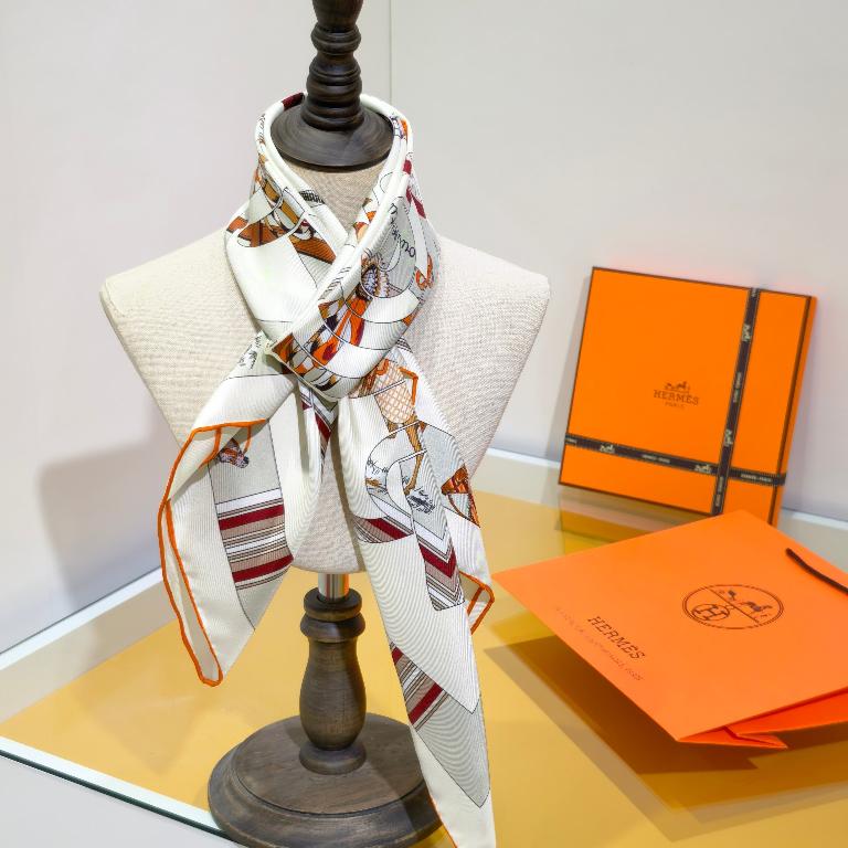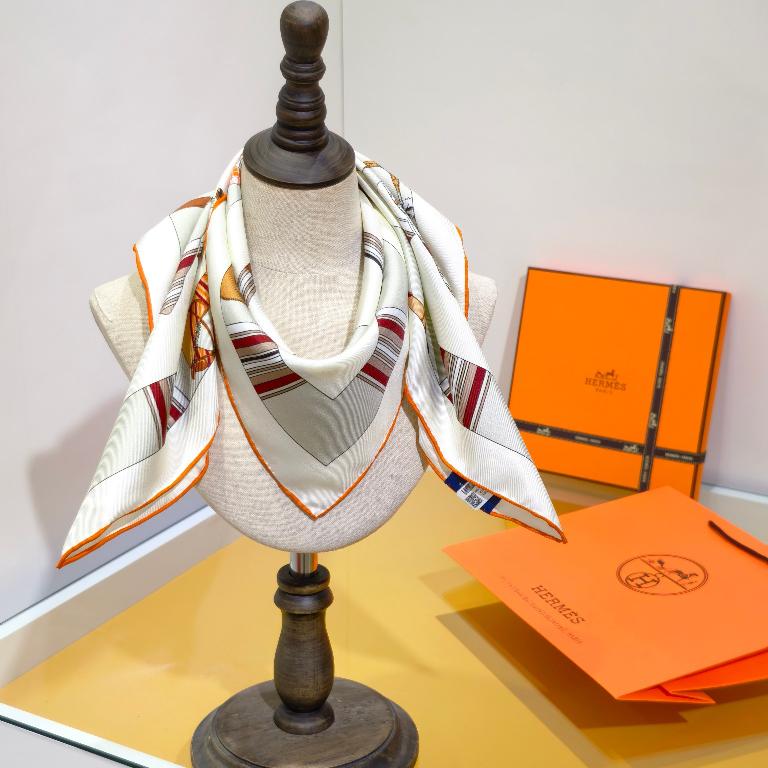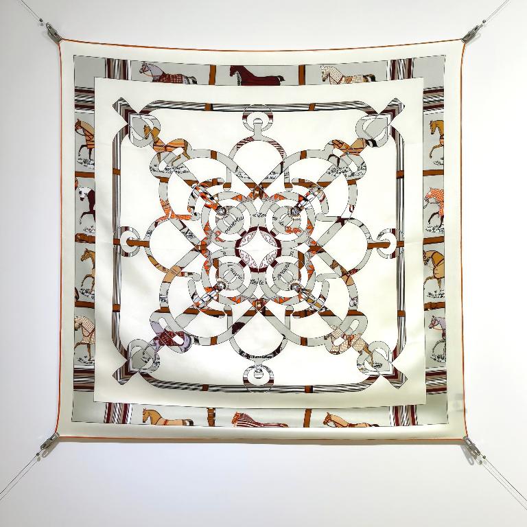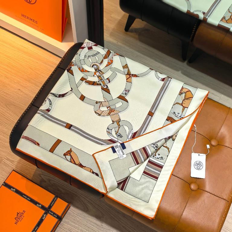 爱马仕 马刺与骏马的披挂 米白斜纹真丝方巾
