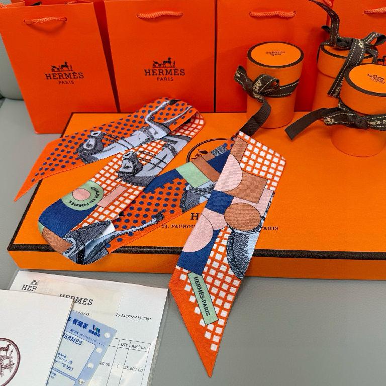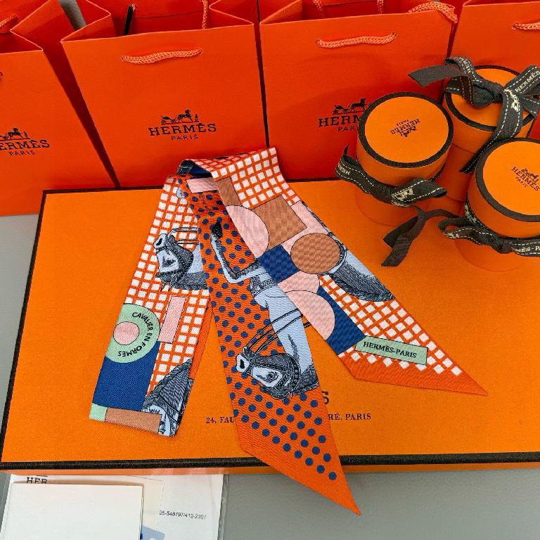 爱马仕Hermes“优雅骑士”Twilly小丝巾 橙蓝撞色