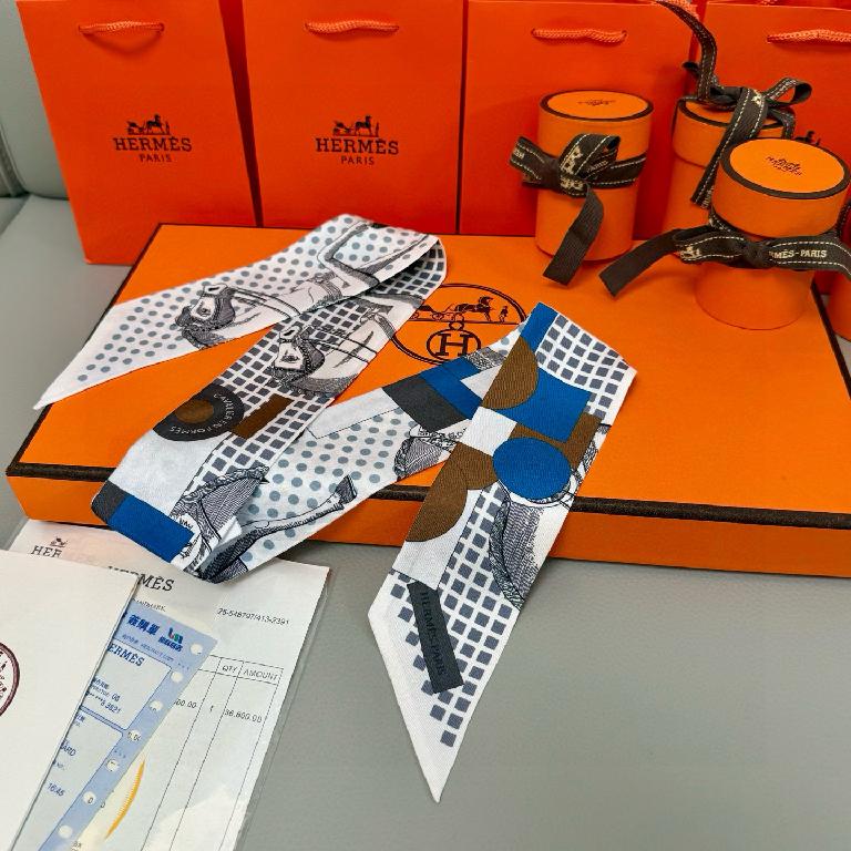 爱马仕Hermes“优雅骑士”Twilly小丝巾 灰蓝撞色