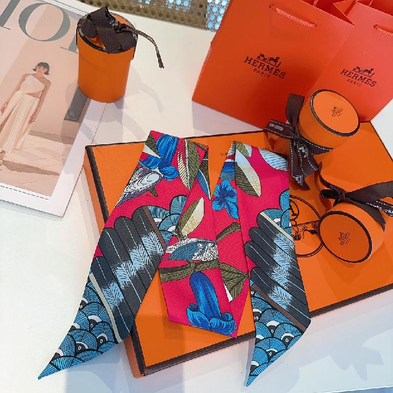 爱马仕Hermes树之歌小丝巾 飘带 玫红色