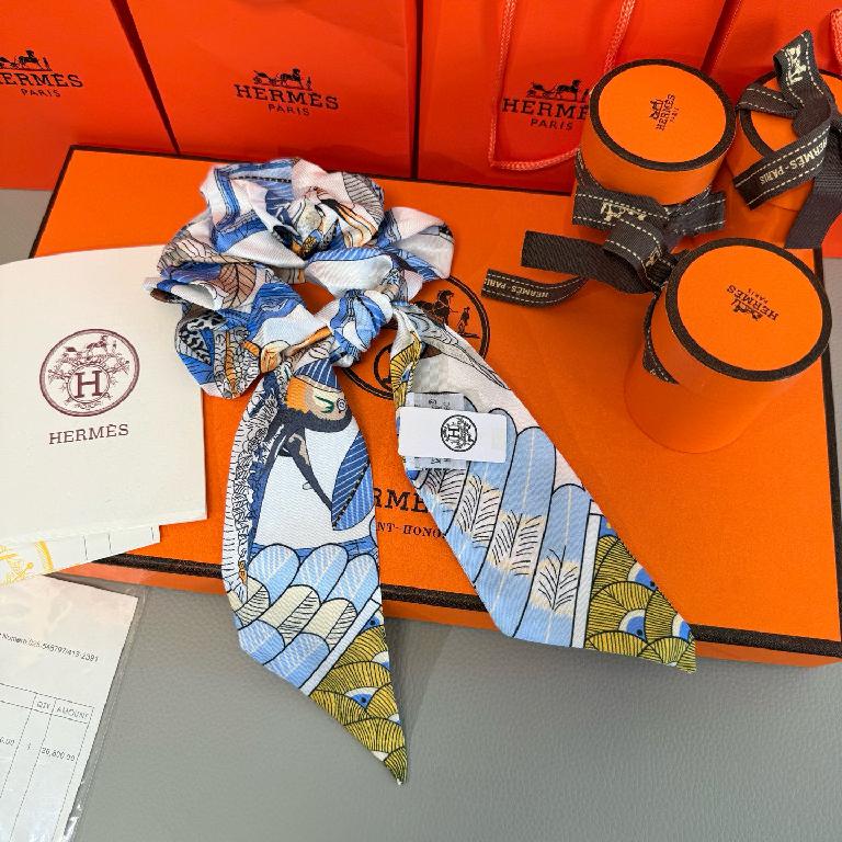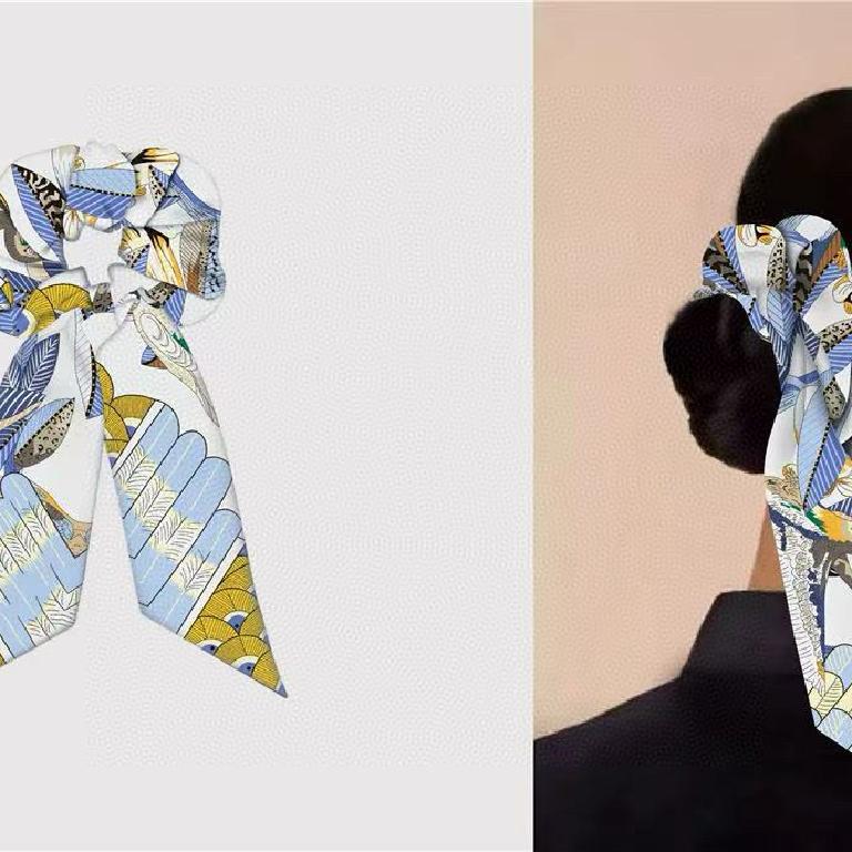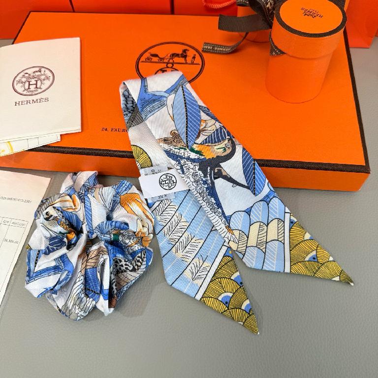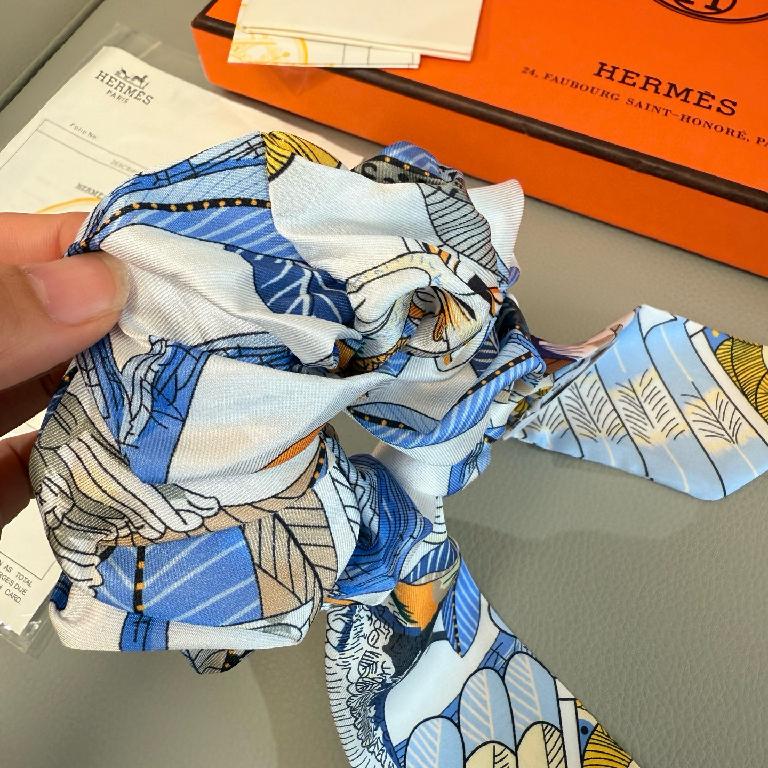 爱马仕Hermes “树之歌”发圈 束发带两用Twilly蓝色小丝巾