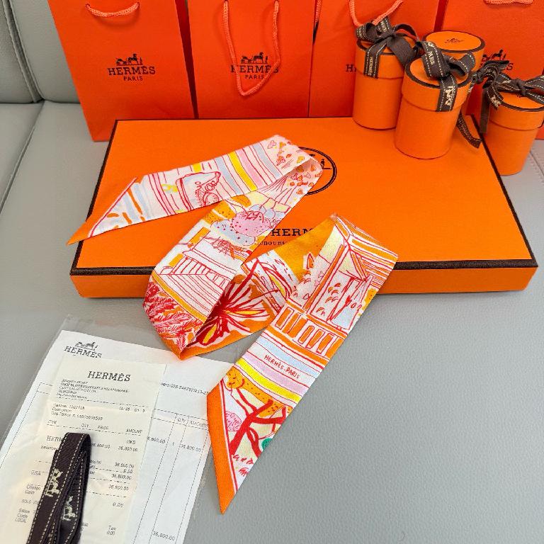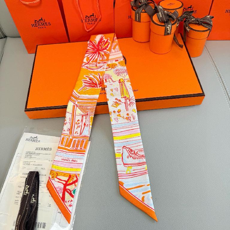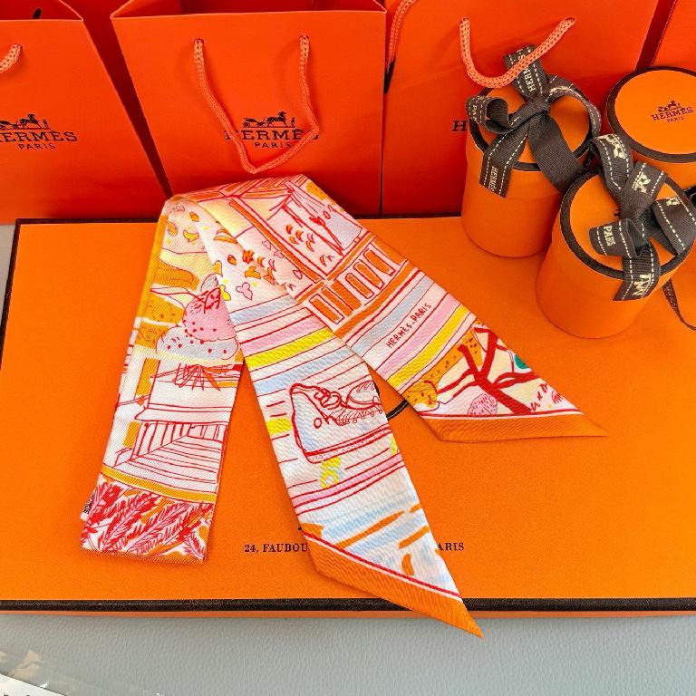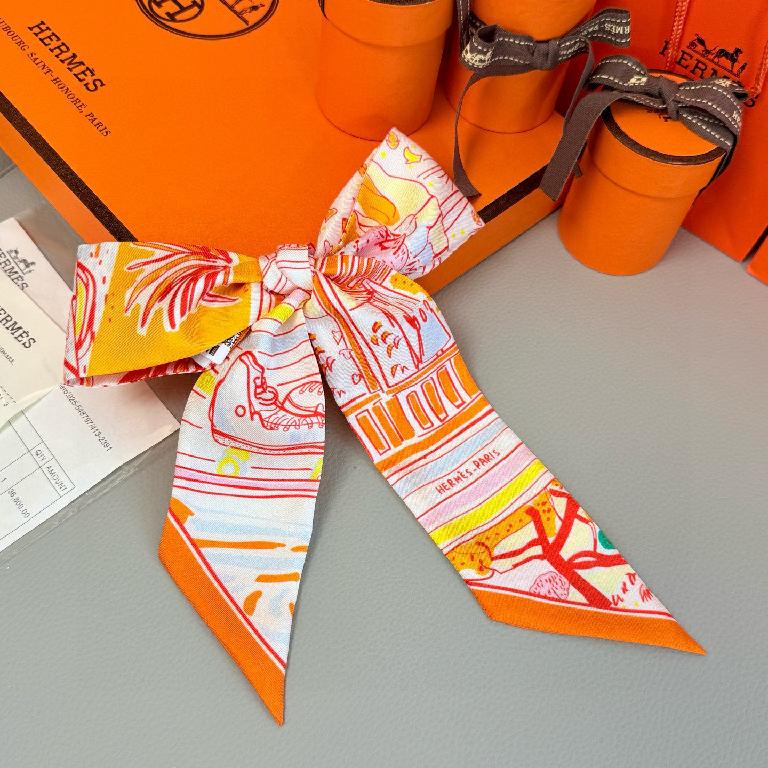 爱马仕Rayures d’Ete Twilly小丝巾 橙色