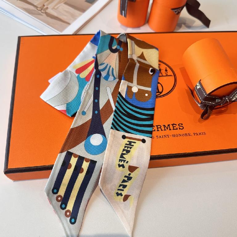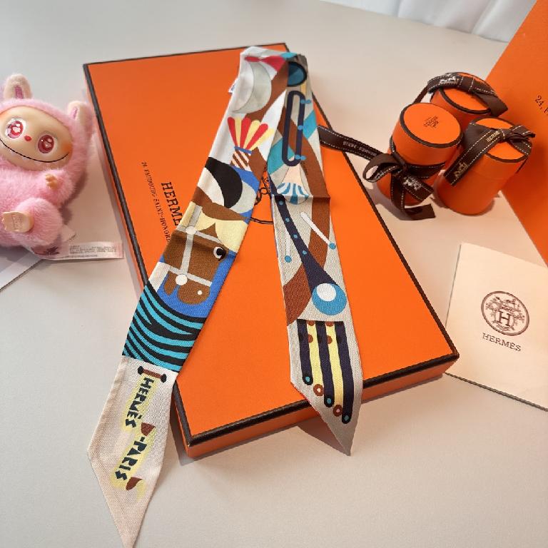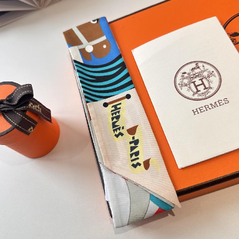 爱马仕Twilly斜纹真丝飘带 米棕蓝撞色
