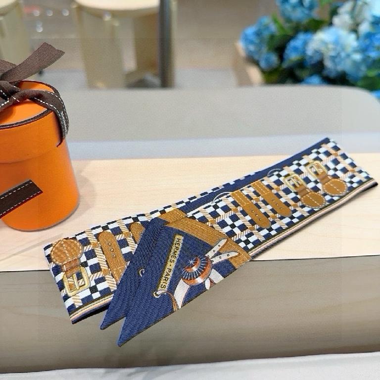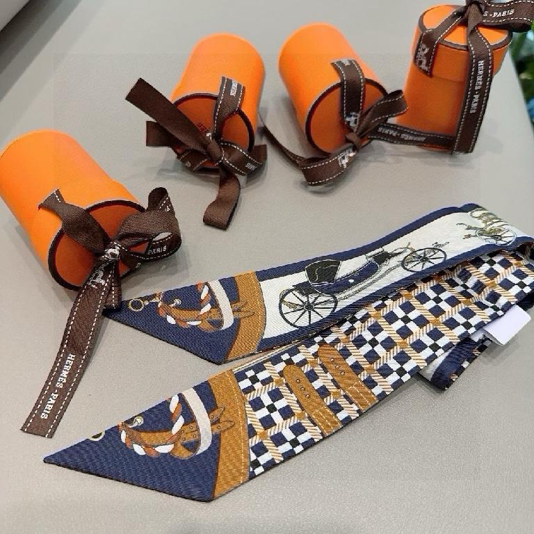 爱马仕Twilly(新型马车)丝巾 蓝棕撞色