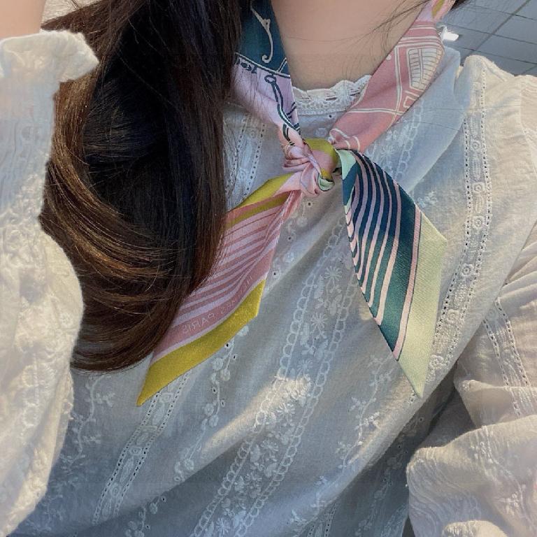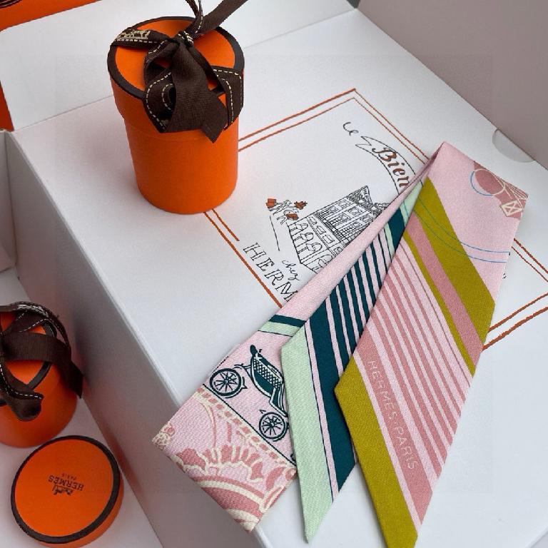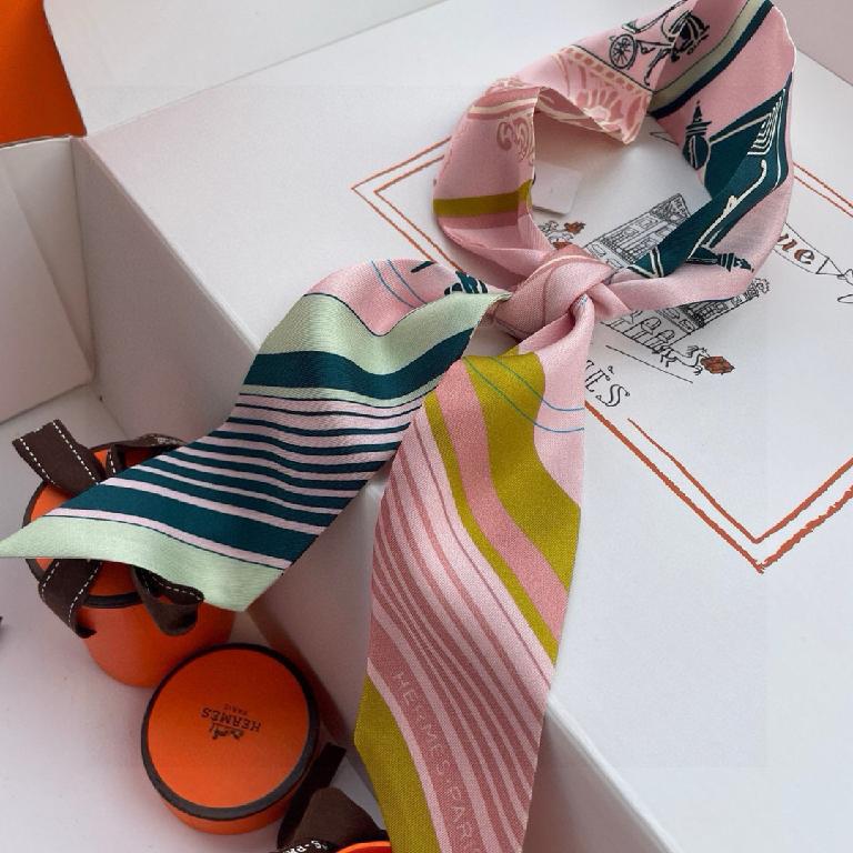 爱马仕Twilly“藏书章”小丝巾 粉蓝撞色