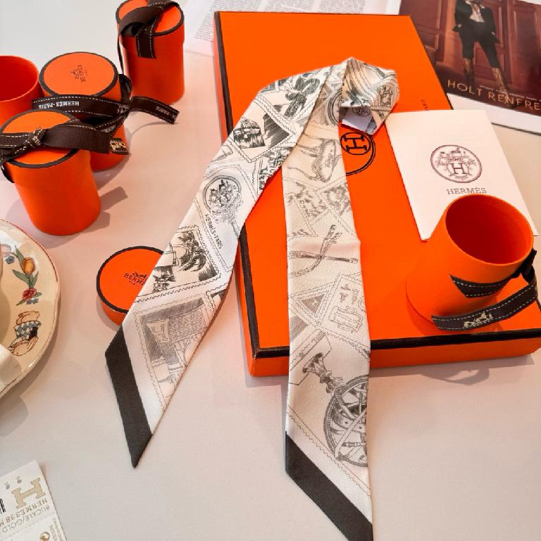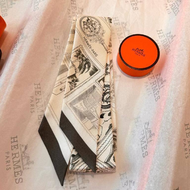 爱马仕Twilly 顶级斜纹真丝飘带 灰白款