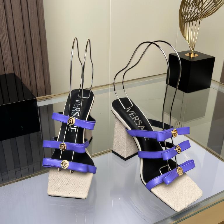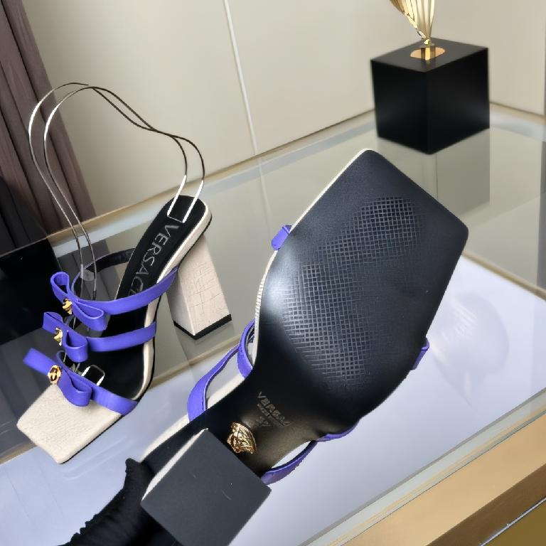 范思哲 La Medusa 系列紫色多带防水台方头高跟凉鞋