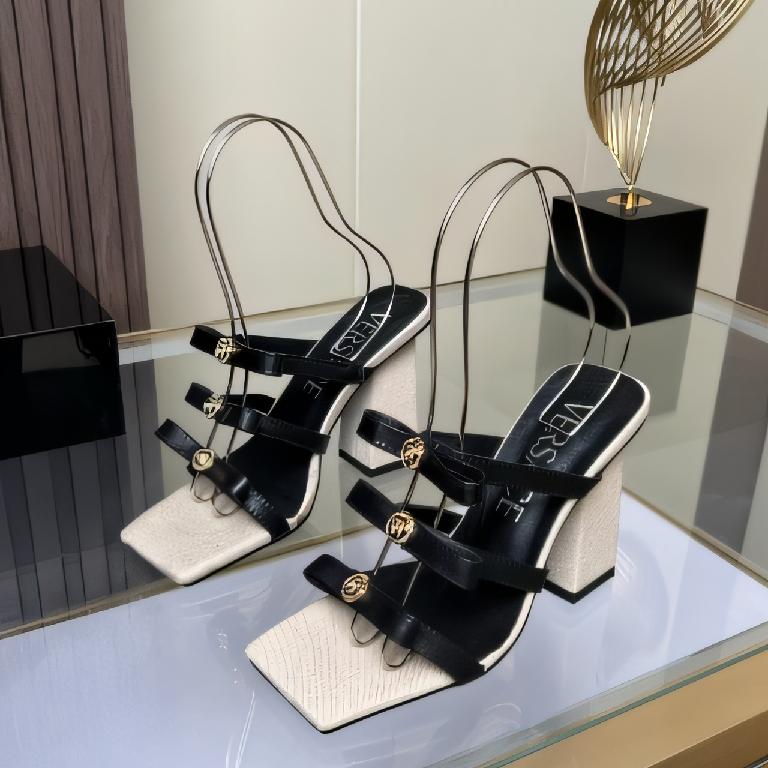 范思哲 La Medusa 系列黑色多带防水台方头高跟凉鞋