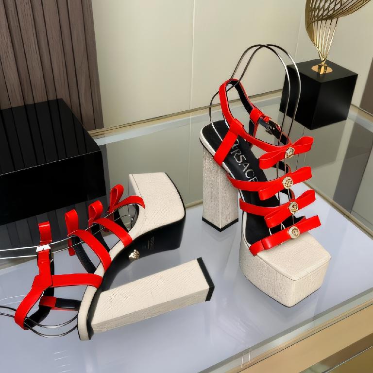 范思哲 Versace Medusa Aevitas 系列超高跟防水台凉鞋(红色款)