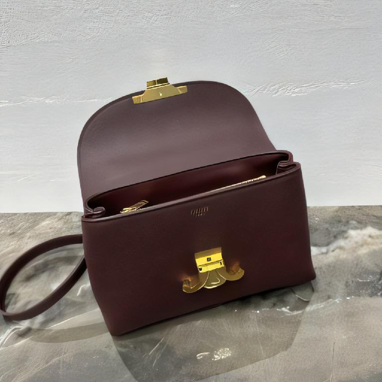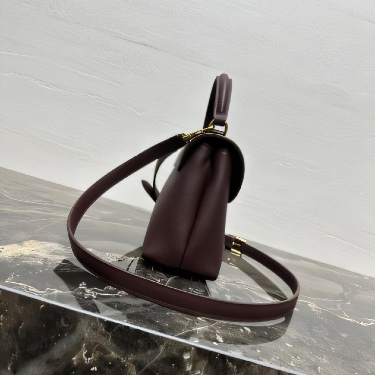 赛琳(Celine)Teen Nino 深勃艮第色柔软粒面小牛皮金色饰面手提单肩包