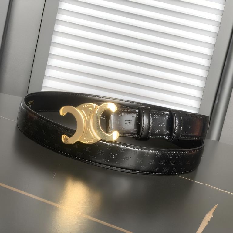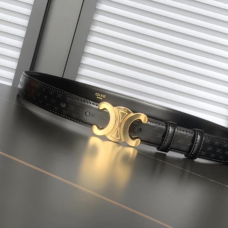 赛琳(Celine)Triomphe 系列黑色老花帆布皮革金色 Triomphe 扣腰带