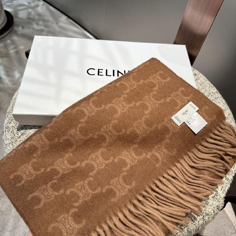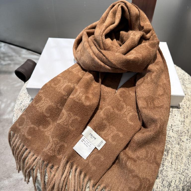 赛琳(CELINE)凯旋门散林老花羊绒围巾 太妃糖米色