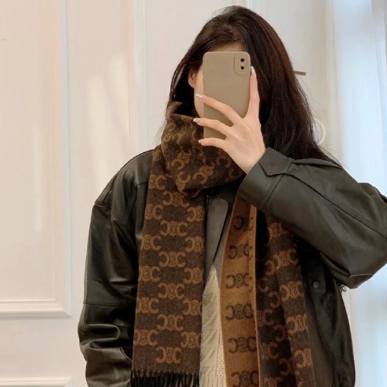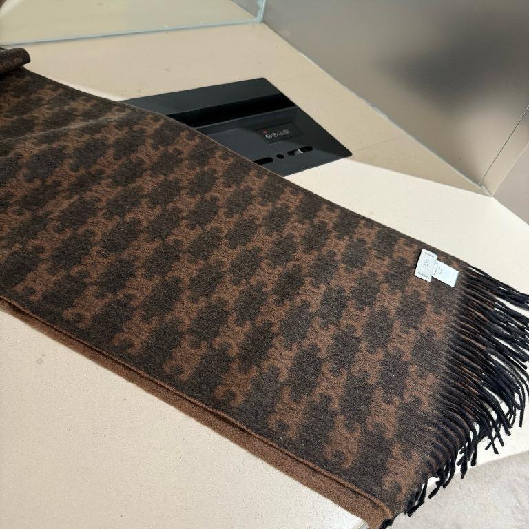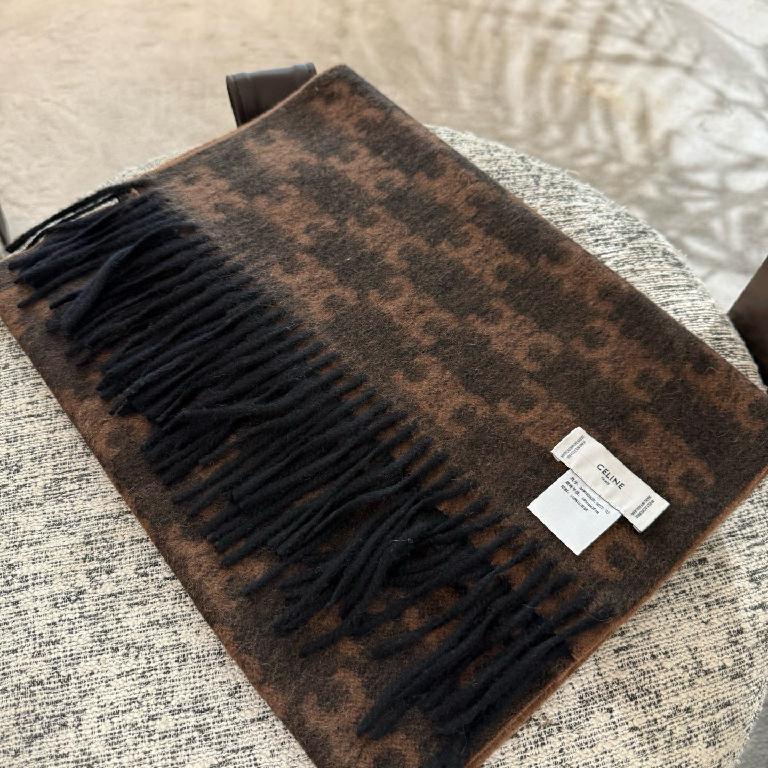 赛琳(CELINE)凯旋门散林老花羊绒围巾 巧克力色