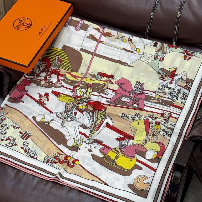 超现实爱马仕枢纽-数码印花围巾 粉色边款