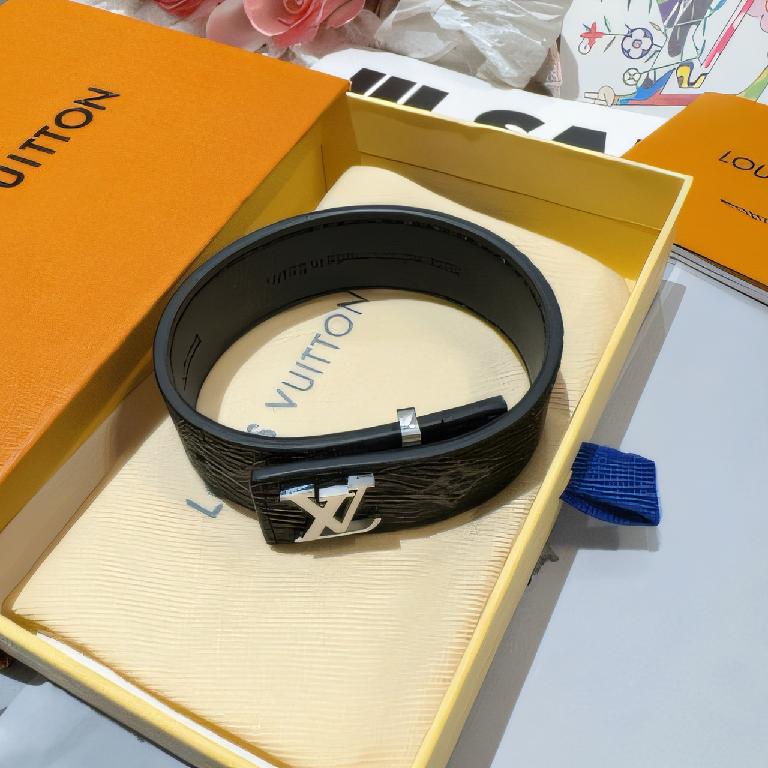 路易威登(LOUIS VUITTON)Taiga Strap 系列黑色 Taïga 小牛皮银色 LV 标识手链