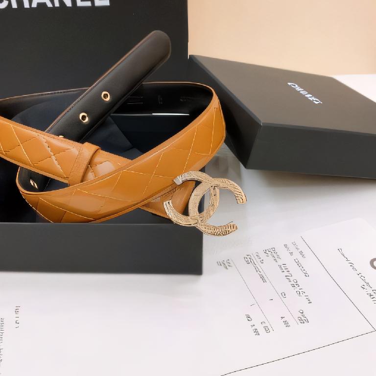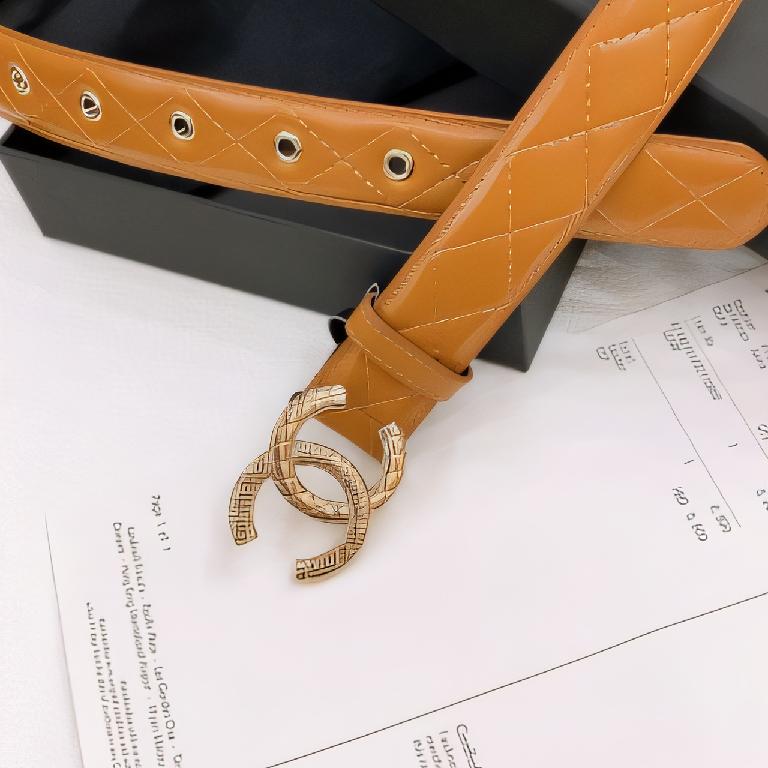 香奈儿(Chanel)棕色绗缝小牛皮金色雕花双 C 扣女士腰带