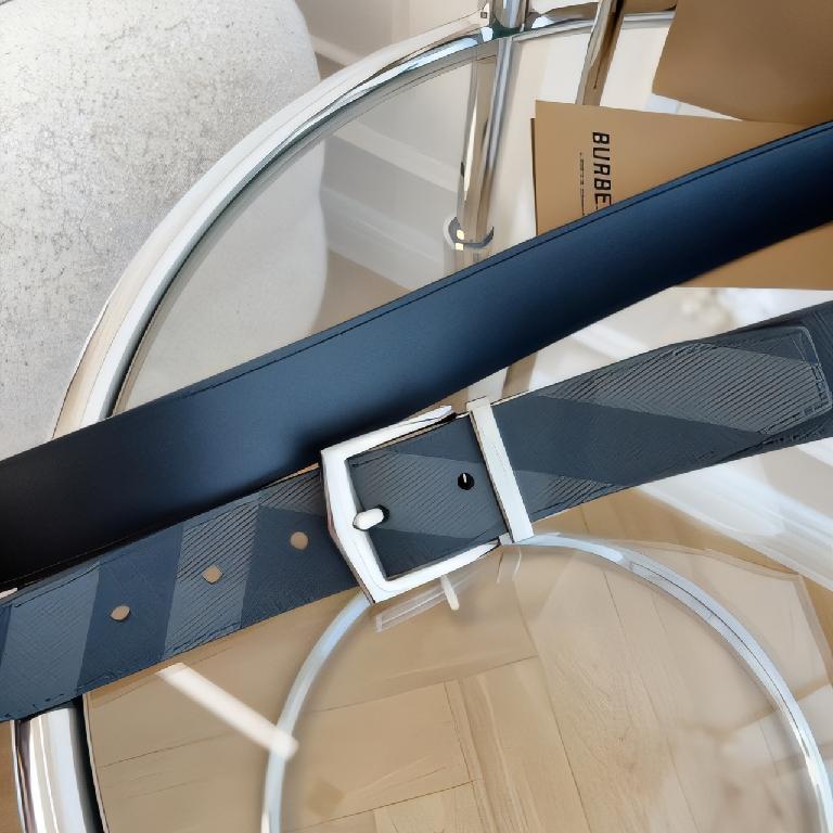 (Burberry)London 格纹系列双面帆布皮革银色矩形针扣腰带