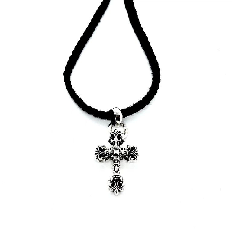 𝐂𝐡𝐫𝐨𝐦𝐞 𝐡𝐞𝐚𝐫𝐭𝐬克罗心火焰十字架皮绳编织项链