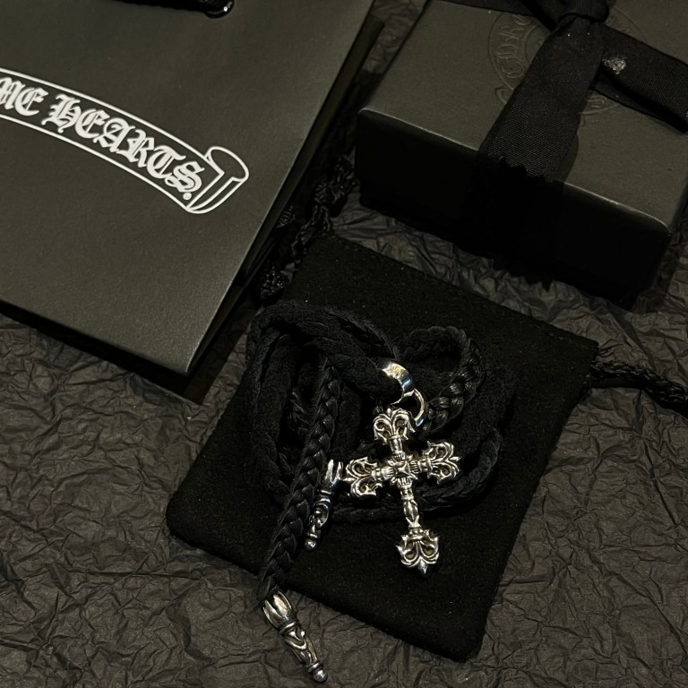 成为第一个“𝐂𝐡𝐫𝐨𝐦𝐞 𝐡𝐞𝐚𝐫𝐭𝐬克罗心火焰十字架皮绳编织项链” 的评价者