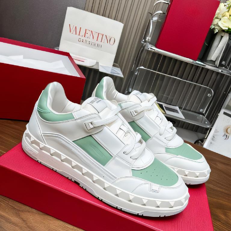 ALENTINO华伦天奴V家Freedots系列 情侣款 铆钉 休闲 运动鞋 滑板鞋 白绿配色