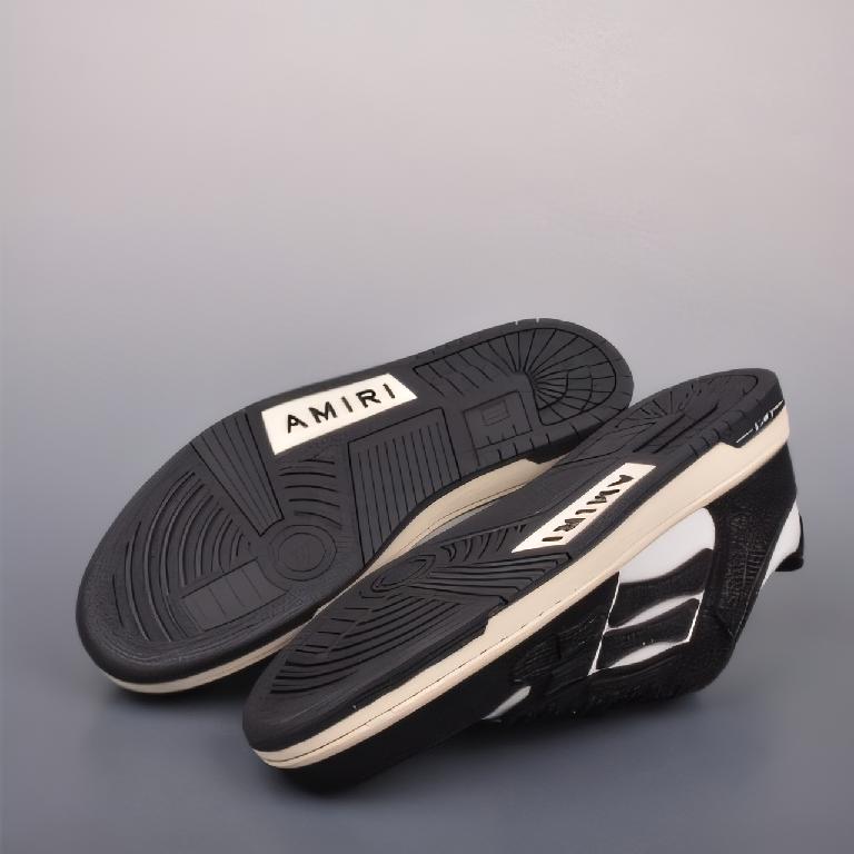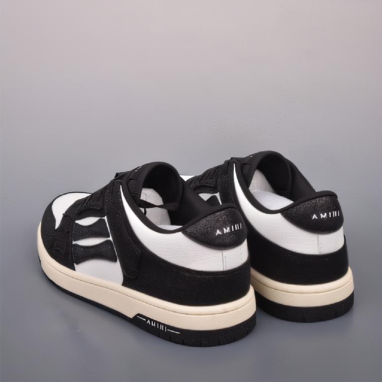 AMIRI Skel-Top Low 黑白拼色皮革低帮运动鞋
