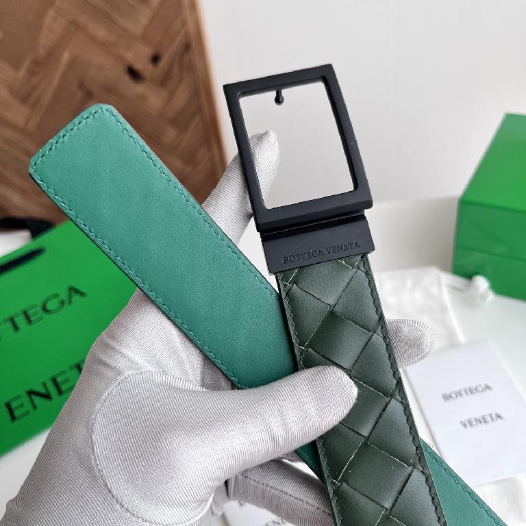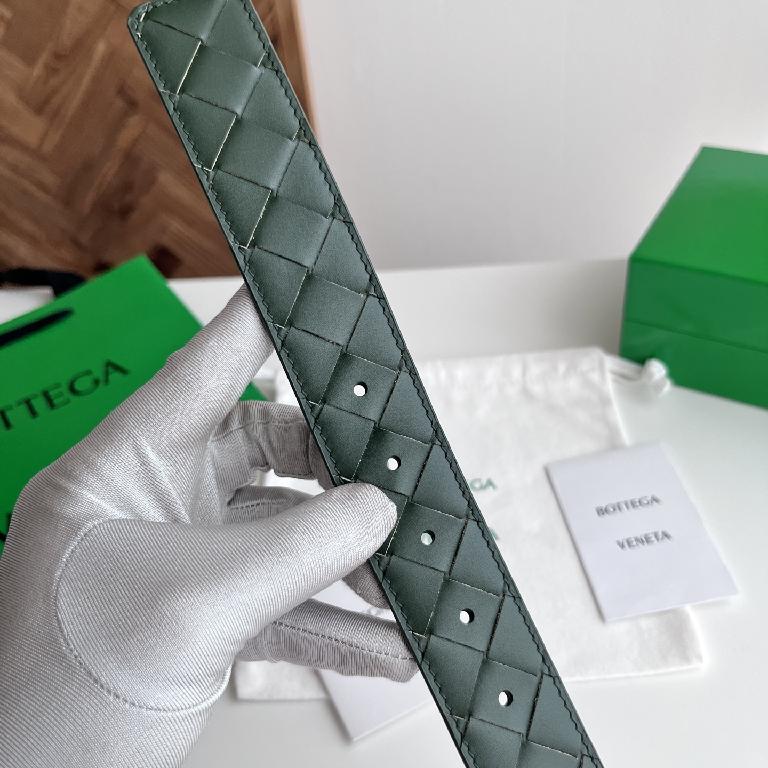 Bottega Veneta Intrecciato 双面编织皮革针扣腰带 绿色