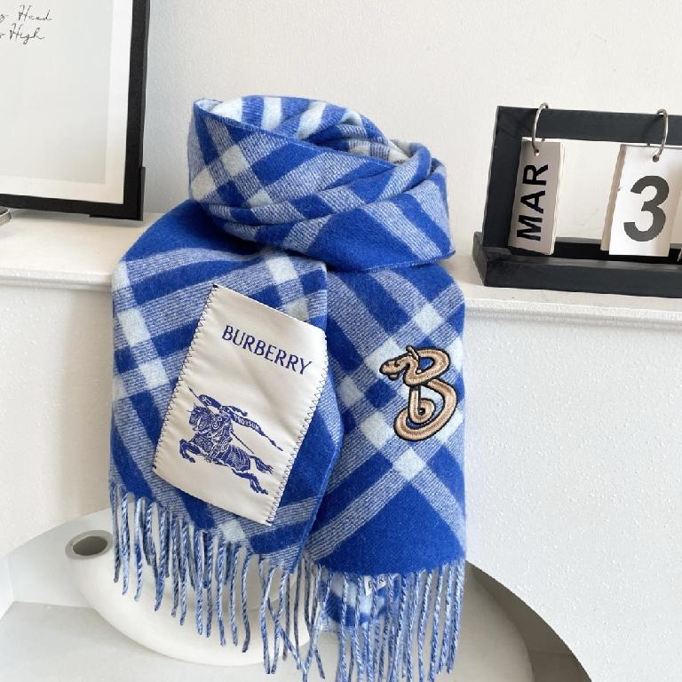 Burberry·蛇logo爆款巴宝莉格子围巾 蓝色