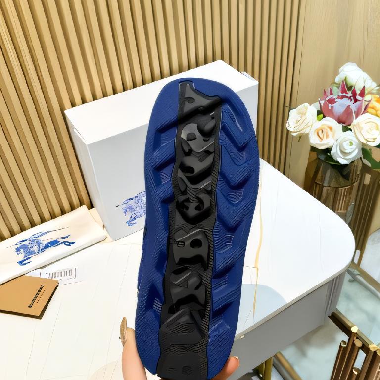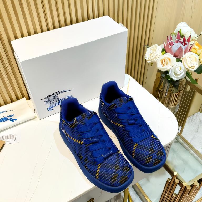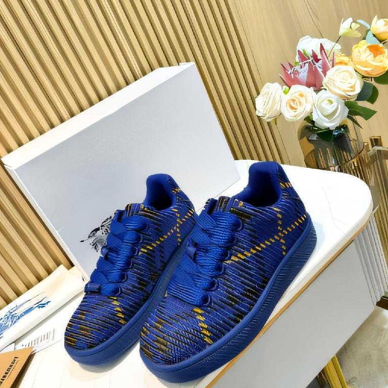 Burberry BOX 系列蓝金格纹低帮休闲运动鞋