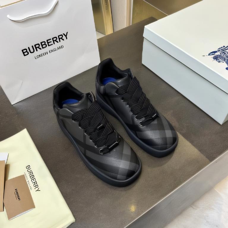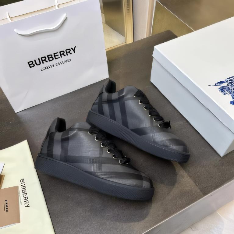 BURBERRY Check Leather Low-Top Sneakers 深灰格纹皮革低帮休闲运动鞋
