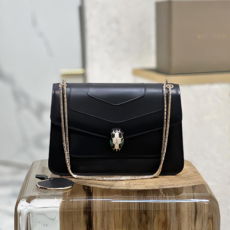BVLGARI 宝格丽 Serpenti Forever 系列黑色小牛皮蛇头链带斜挎包