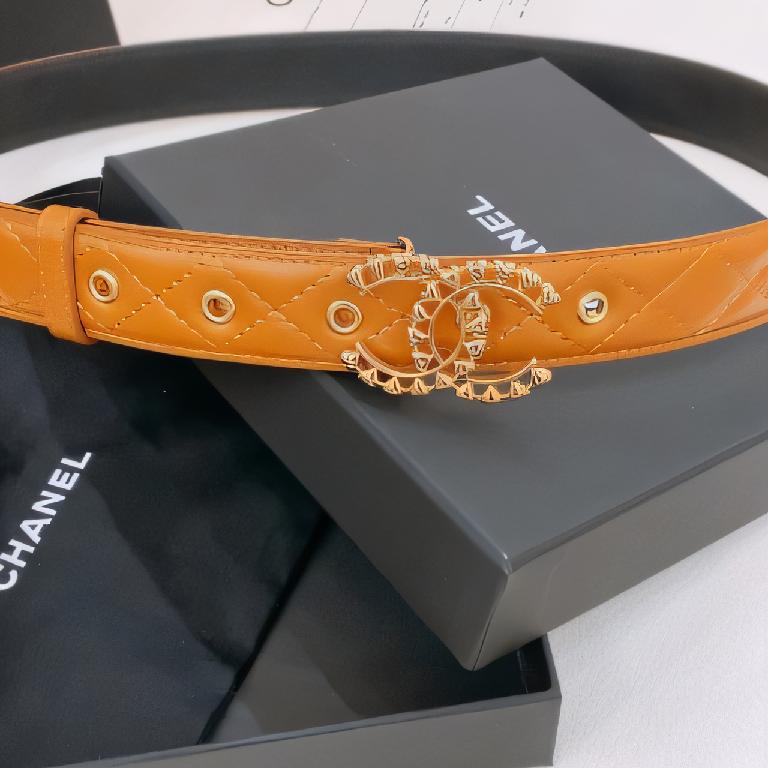 CHANEL(香奈儿)棕色菱格纹皮革铆钉双 C 扣腰带
